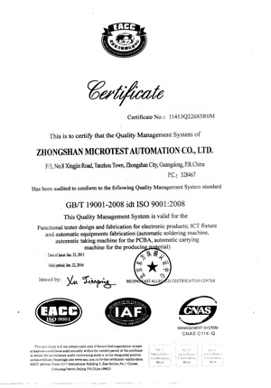 The Microtest Automation Equipment Co., Ltd.,obtained ISO9000 certification are eligible to obtain